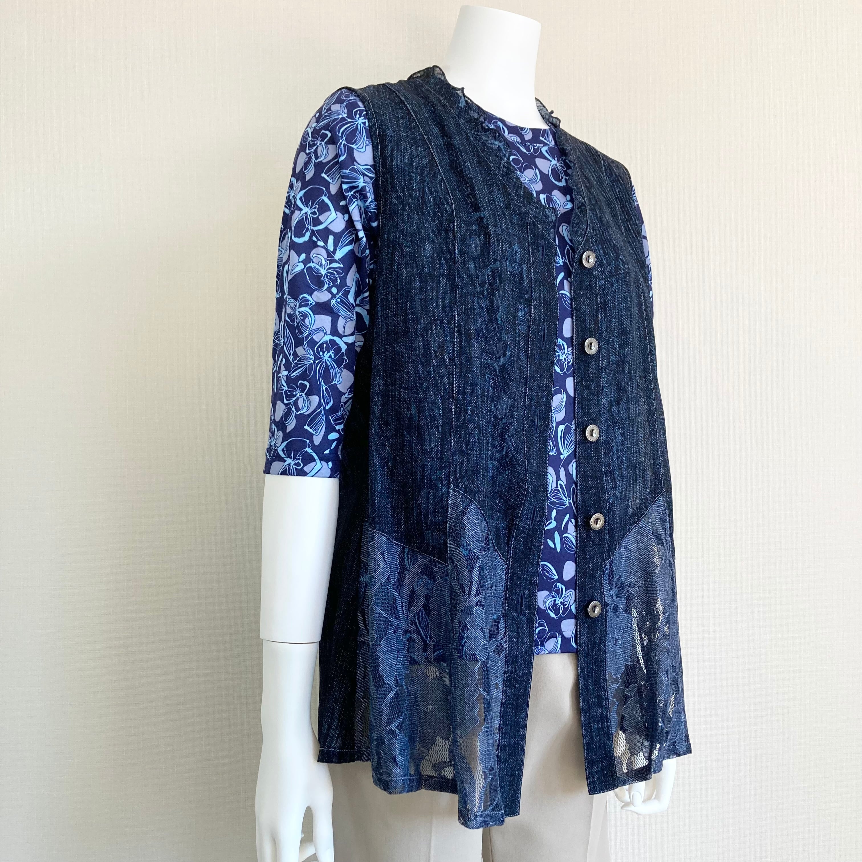夏の体型カバーに最適!透け感のある薄手素材で夏でも涼やか♪レース使いがエレガントなサマーベスト