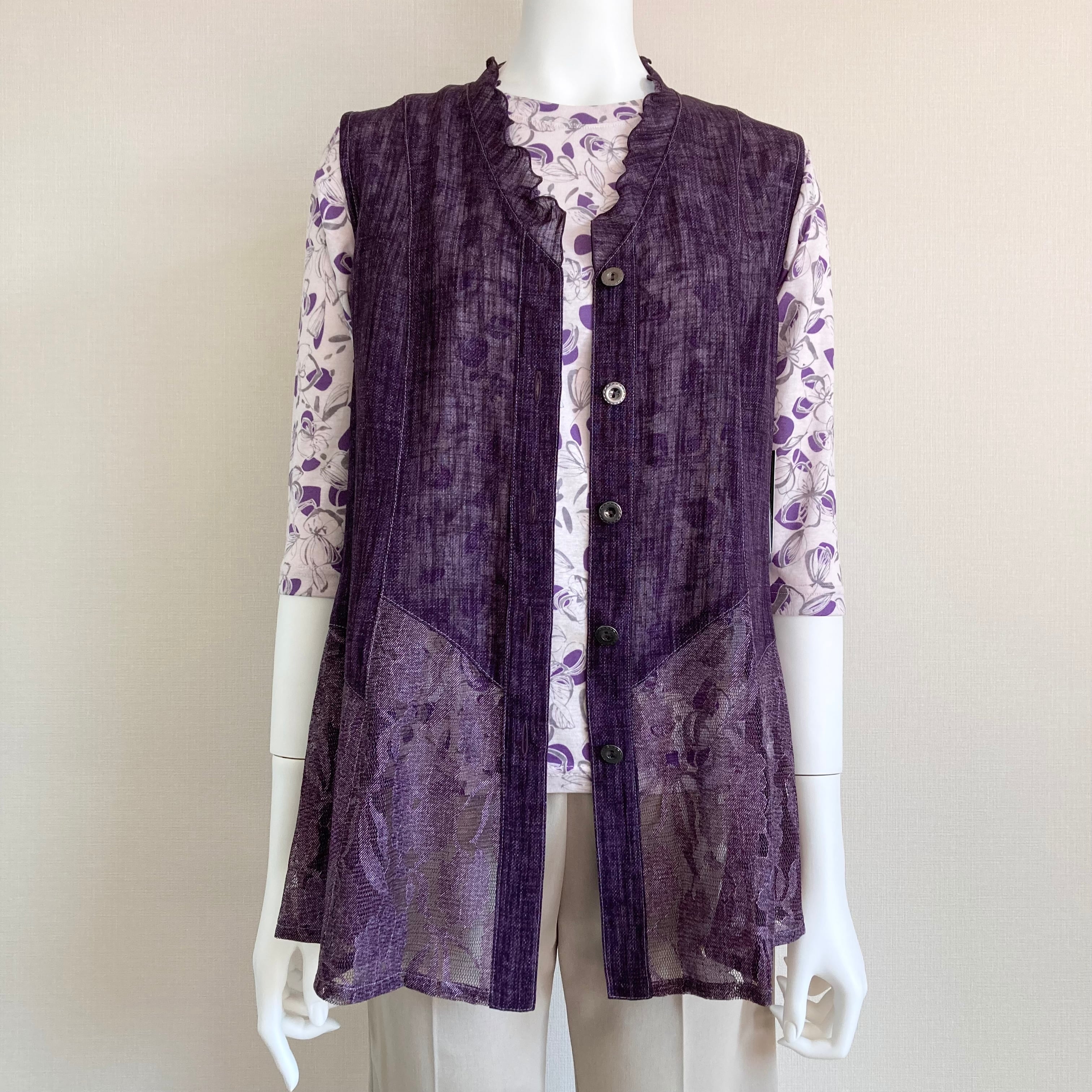 【初夏新作】レース使いがエレガント!透け感のある薄手素材のサマーベスト/70代・80代・90代の日本製ギフト/小さめ・Sサイズのおばあちゃん服オシャレなシニアファッション