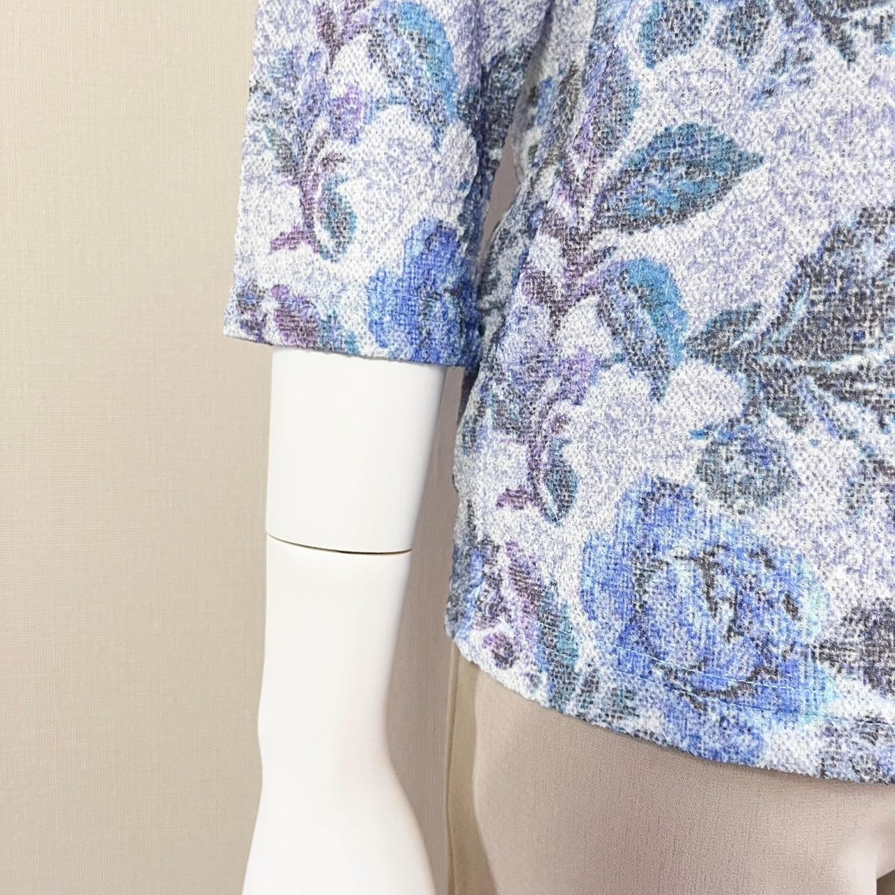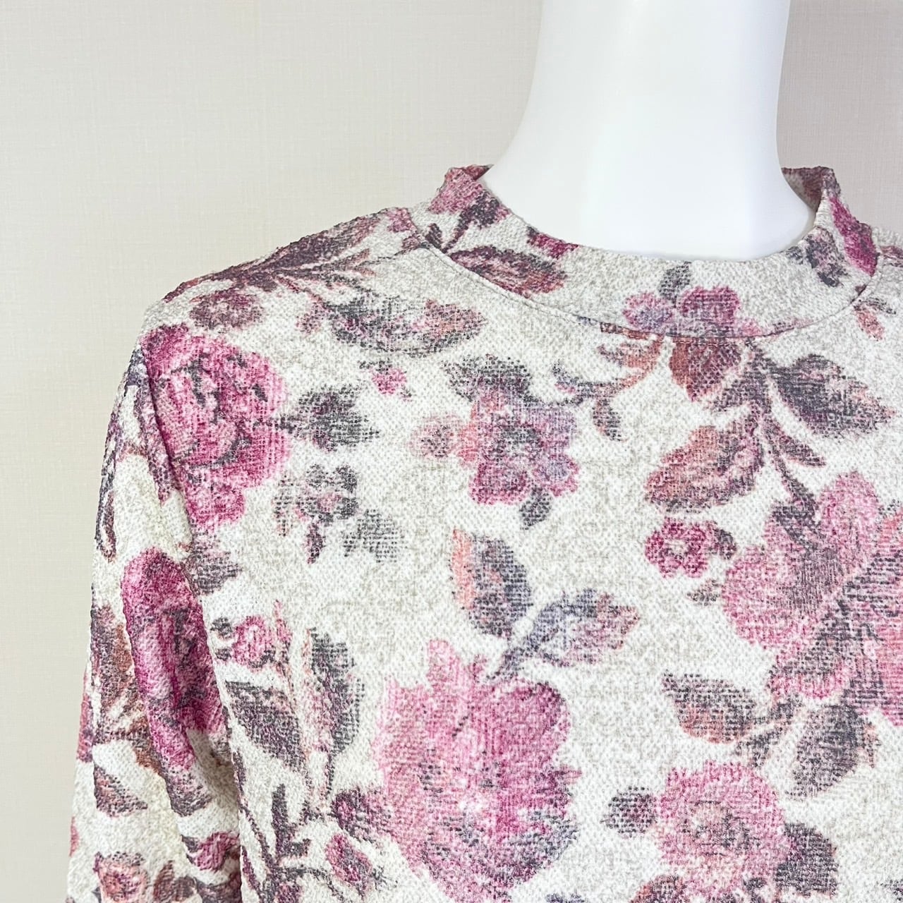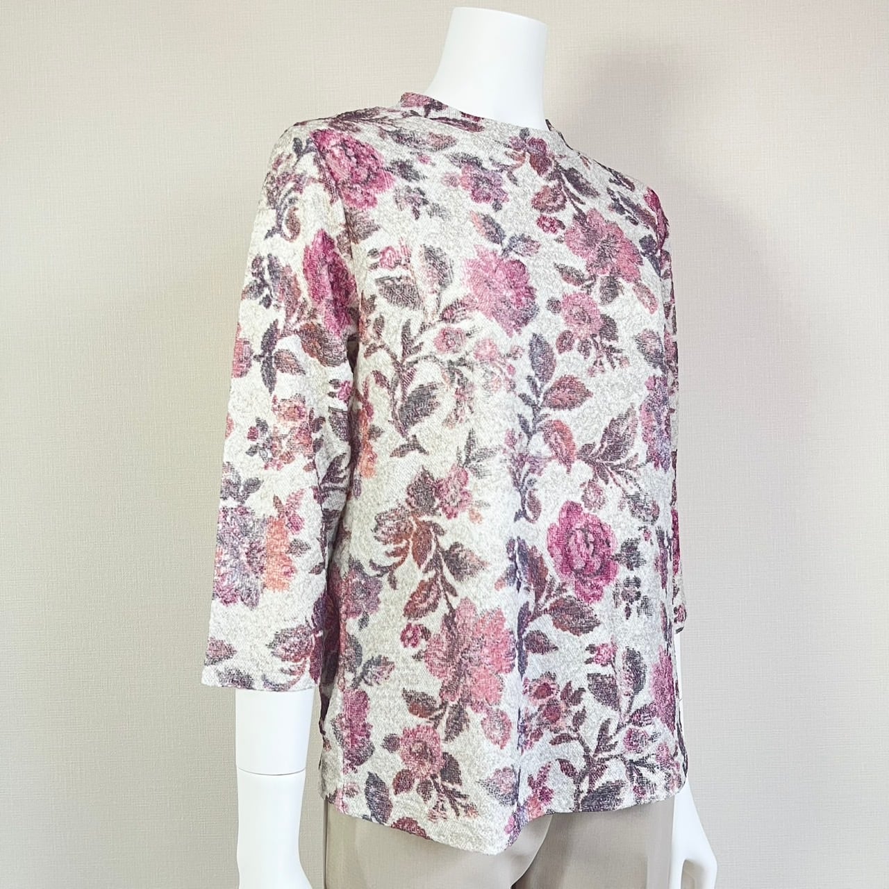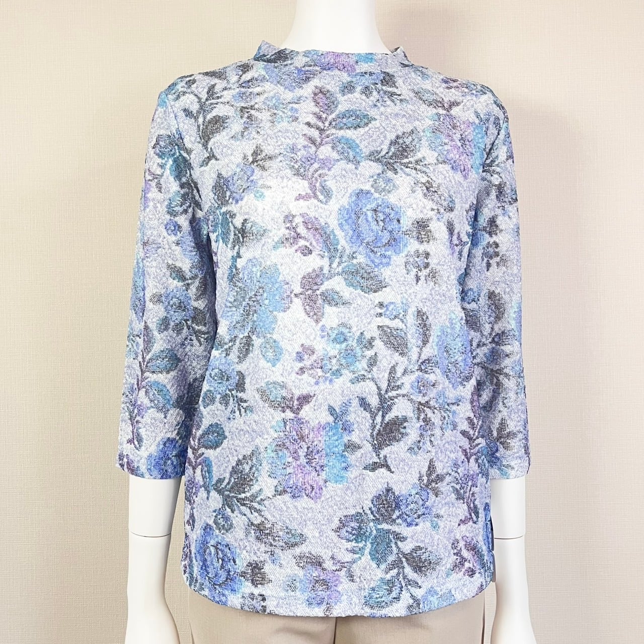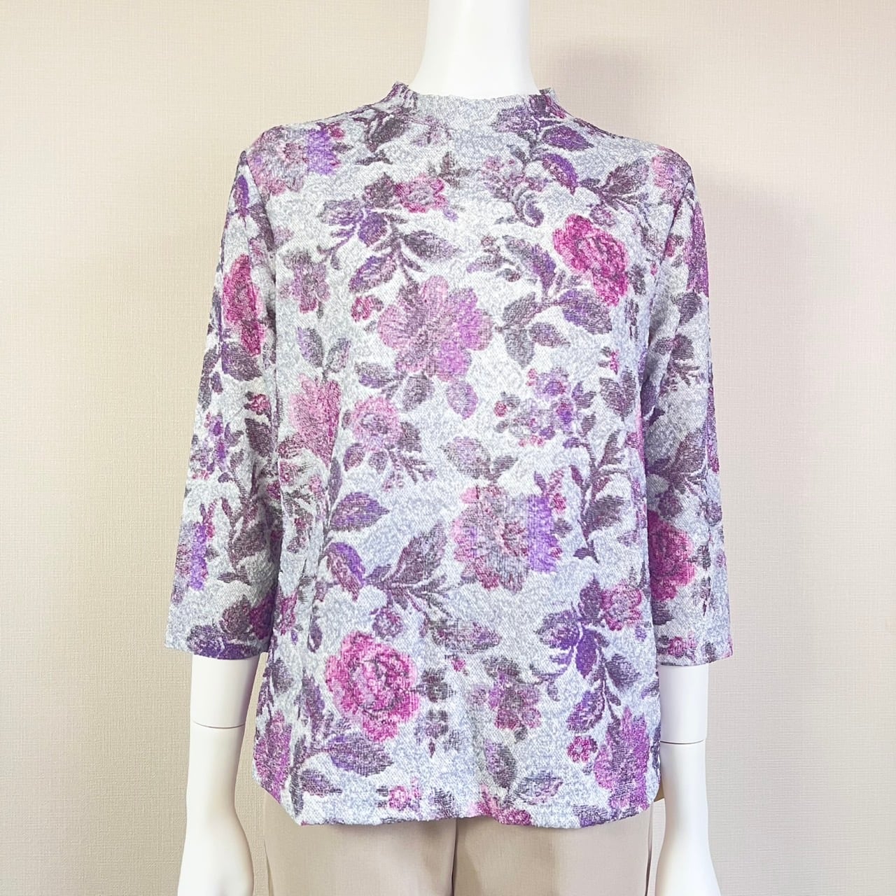 人気のプチハイネック&7分袖!優しい色合いの花柄がエレガントで美しい