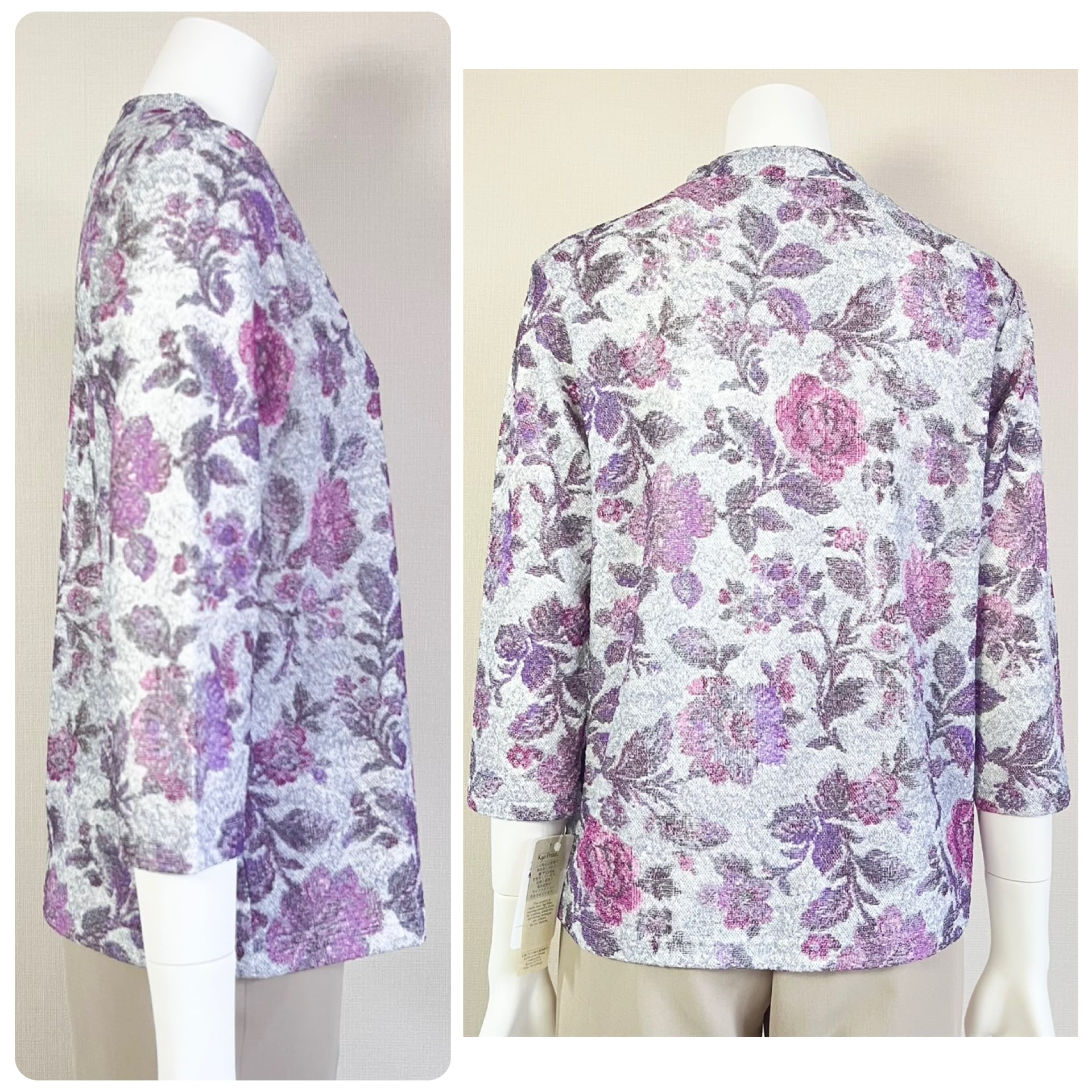 【初夏新作】洗濯機OK!7分袖&セミハイネック☆エレガントなバラ柄☆ちりめん風で高級感のあるカットソー/日本製/70代・80代・90代ギフト/Sサイズ小さめ高齢者服シニアファッション