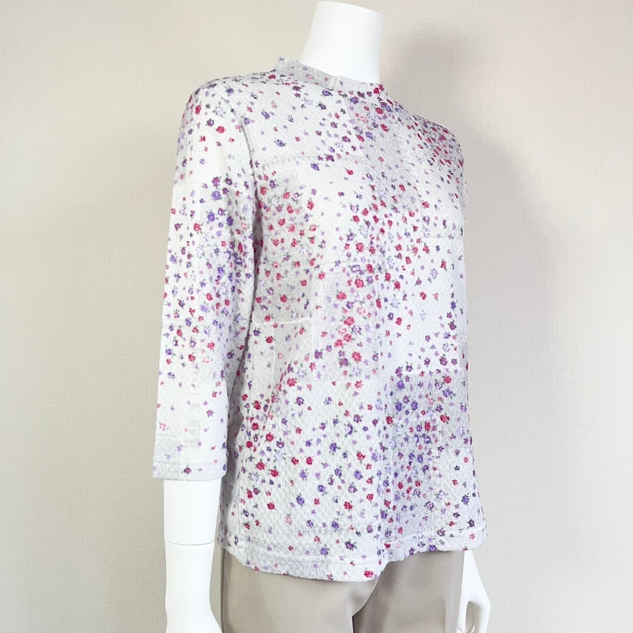 人気のプチハイネック&7分袖!優しい色合いの小花柄で普段使いしやすい