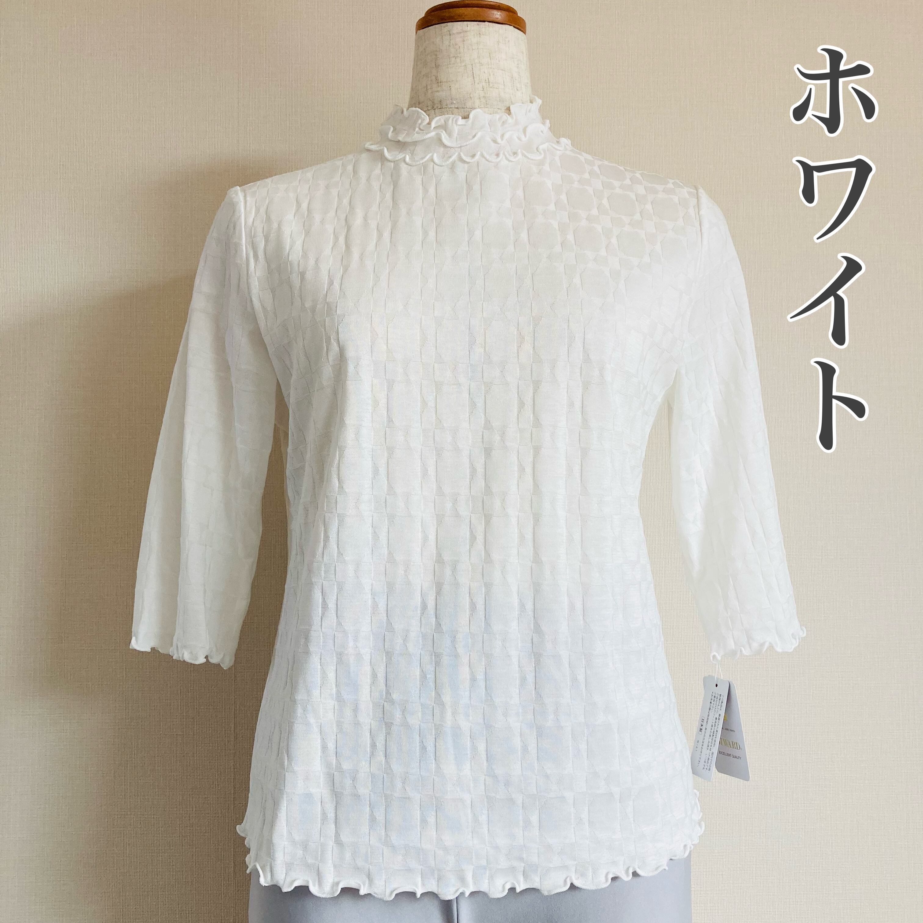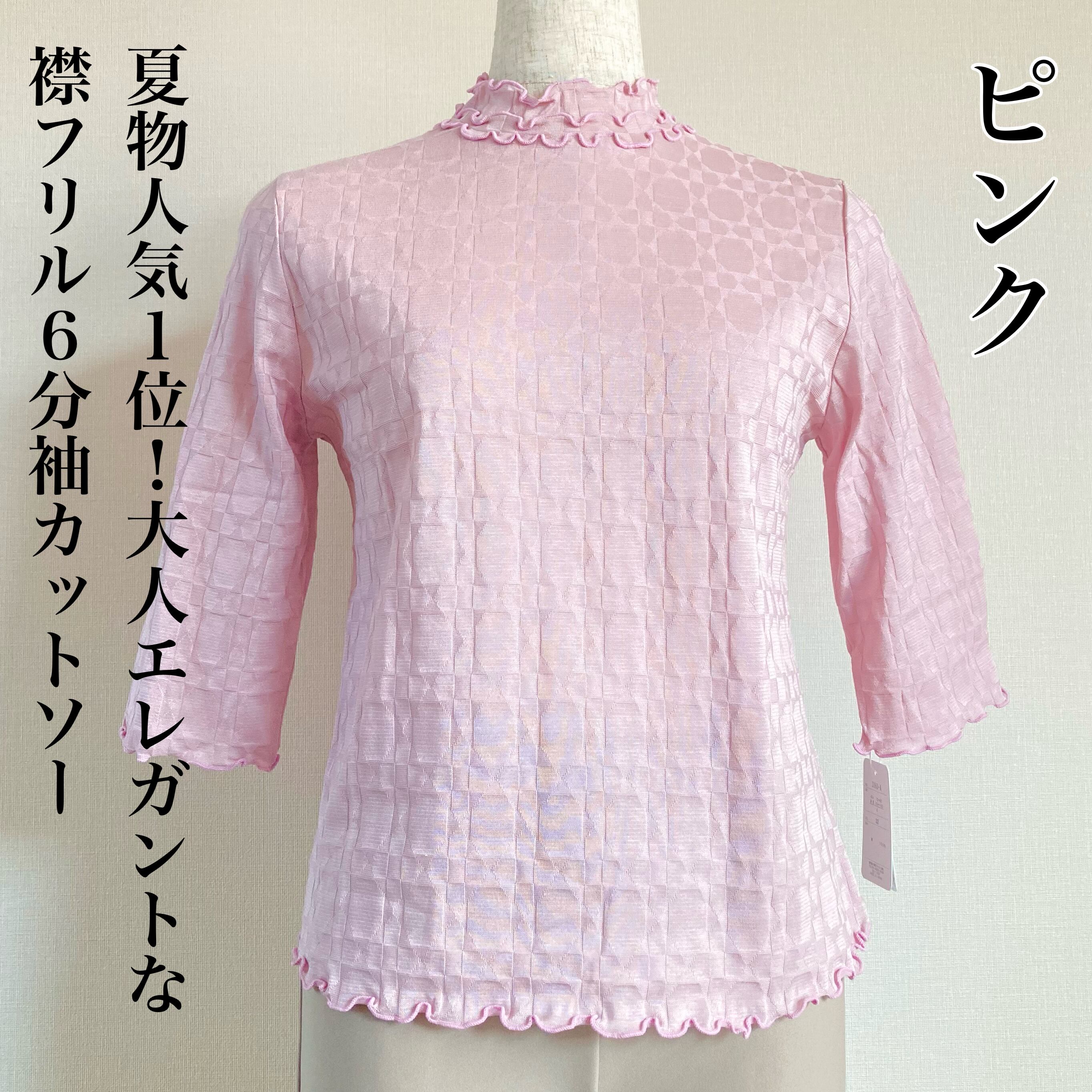 「当店夏物で3年連続人気No.1の襟フリル6部袖カットソー」の