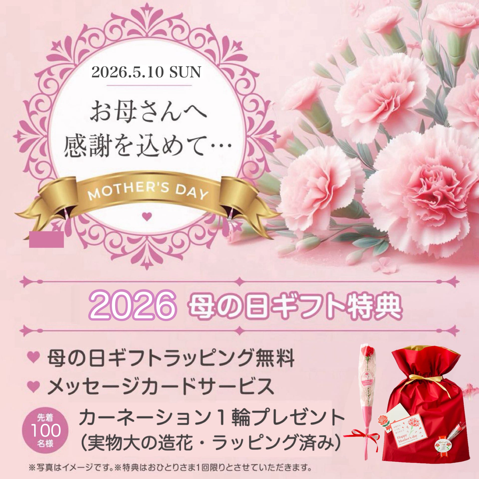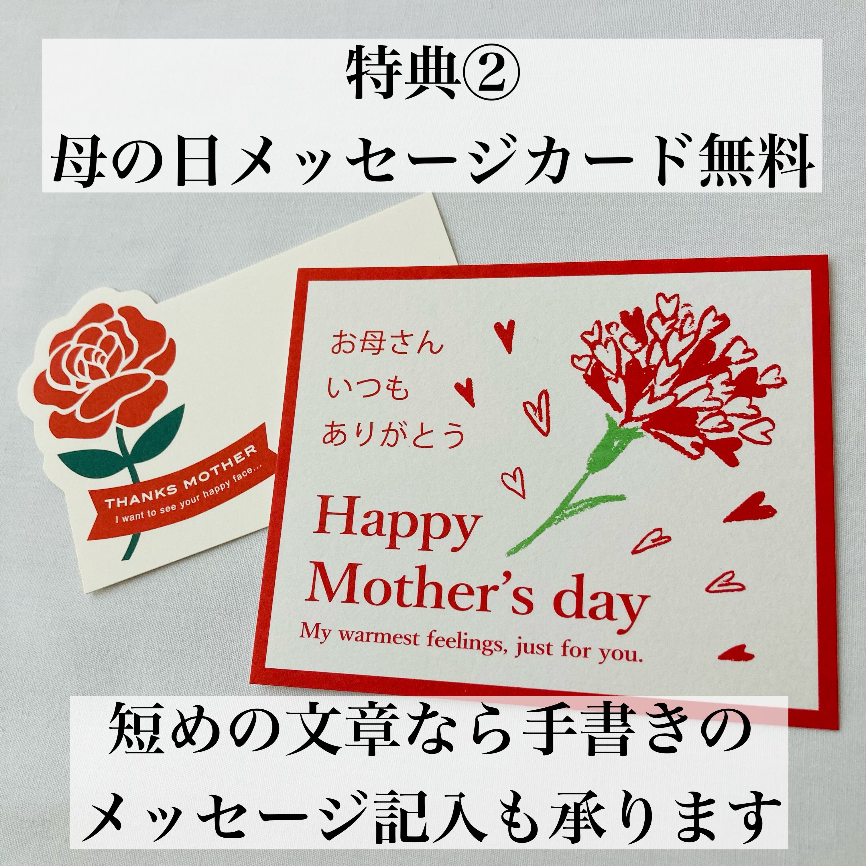 確実に母の日までの到着を希望される場合は、到着指定日を1〜2日前に指定するなど、余裕を持った到着指定を推奨します。