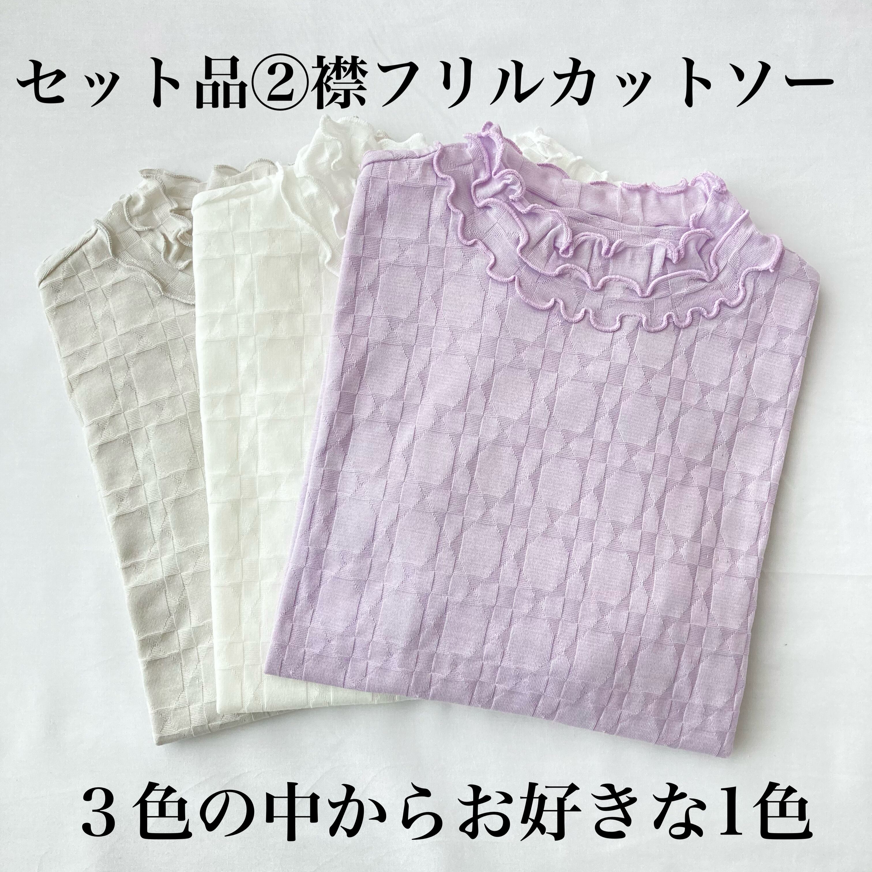 母の日ギフト限定のお得なセット☆カーディガン(グレー)+襟フリルカットソー(選べる3色)の2点セット