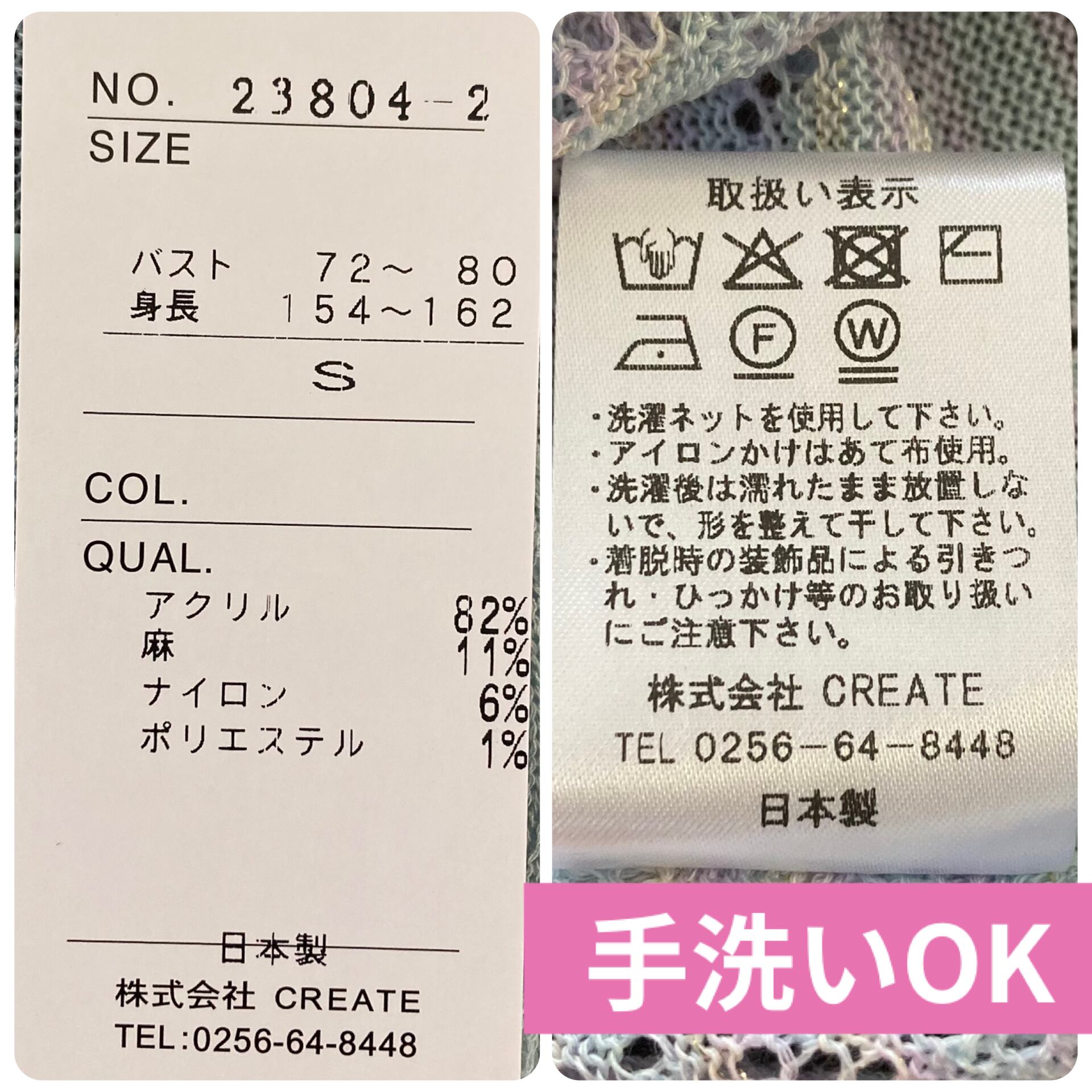 素材:素材:アクリル82%、麻11%、ナイロン6%、ポリエステル1%