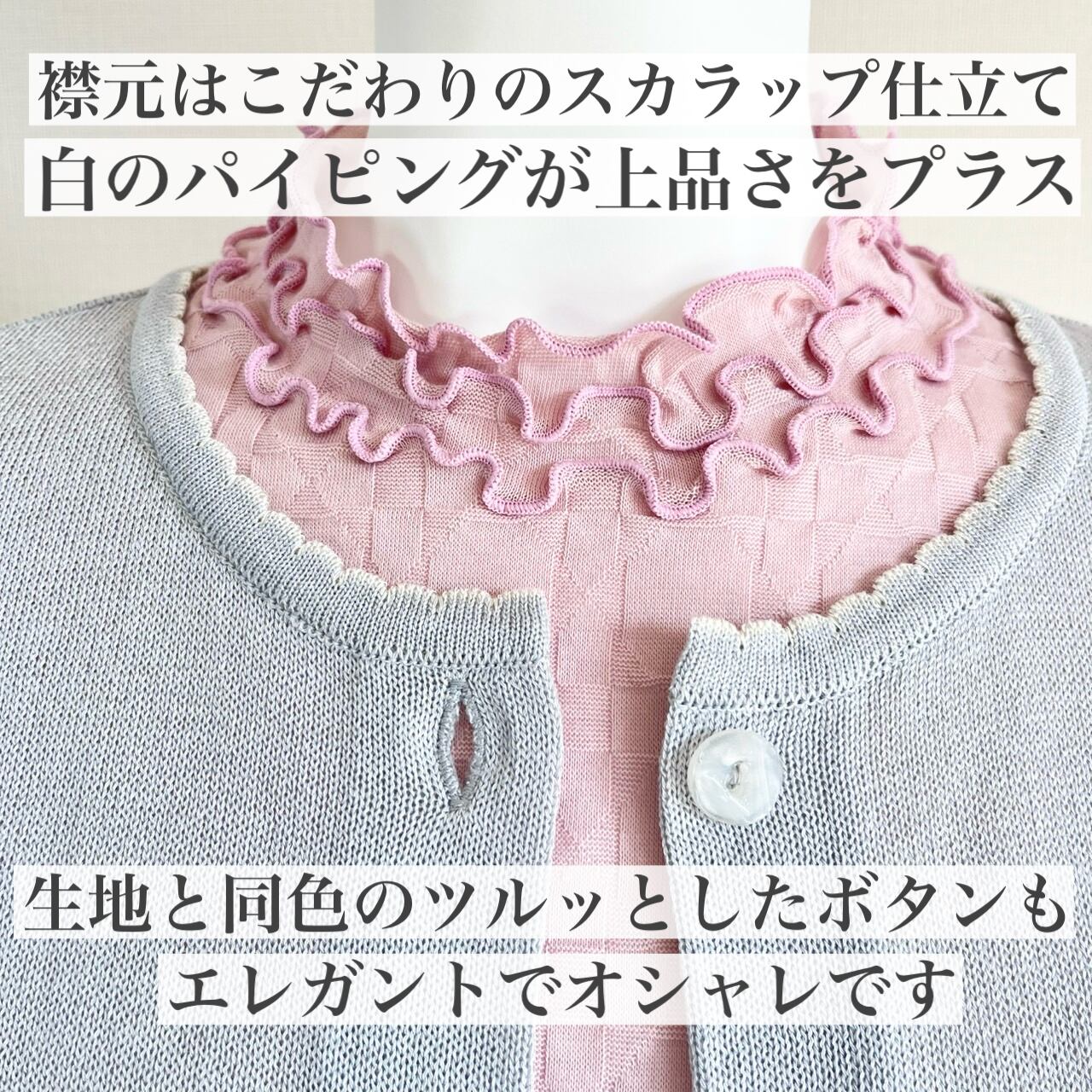 合わせやすく上品なライトグレーのカーディガンに合う、