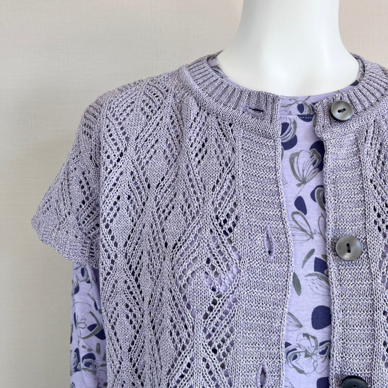 透け感のあるレース編みでとっても軽やか!薄手で、通気性抜群の綿素材なので春〜夏まで長く使えます