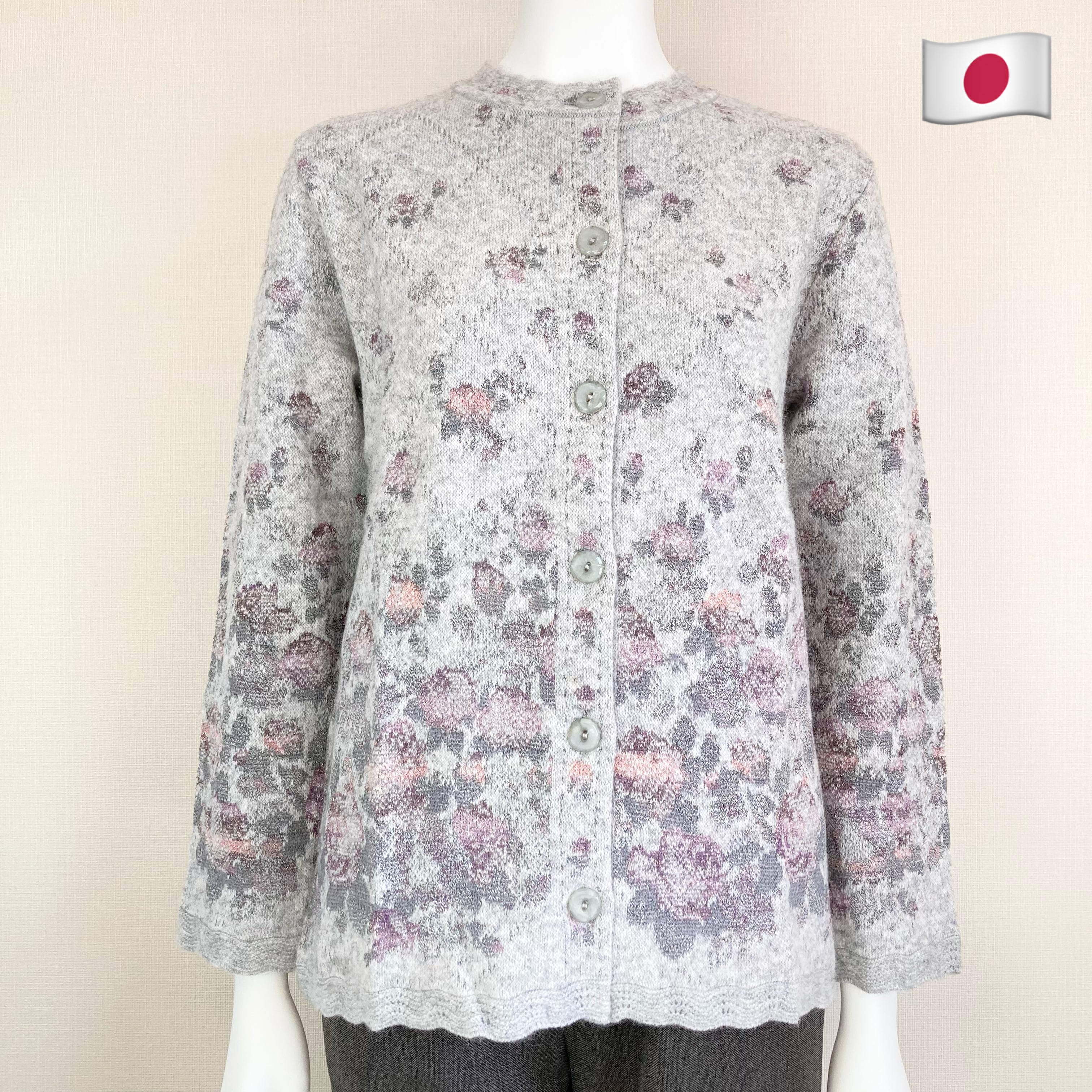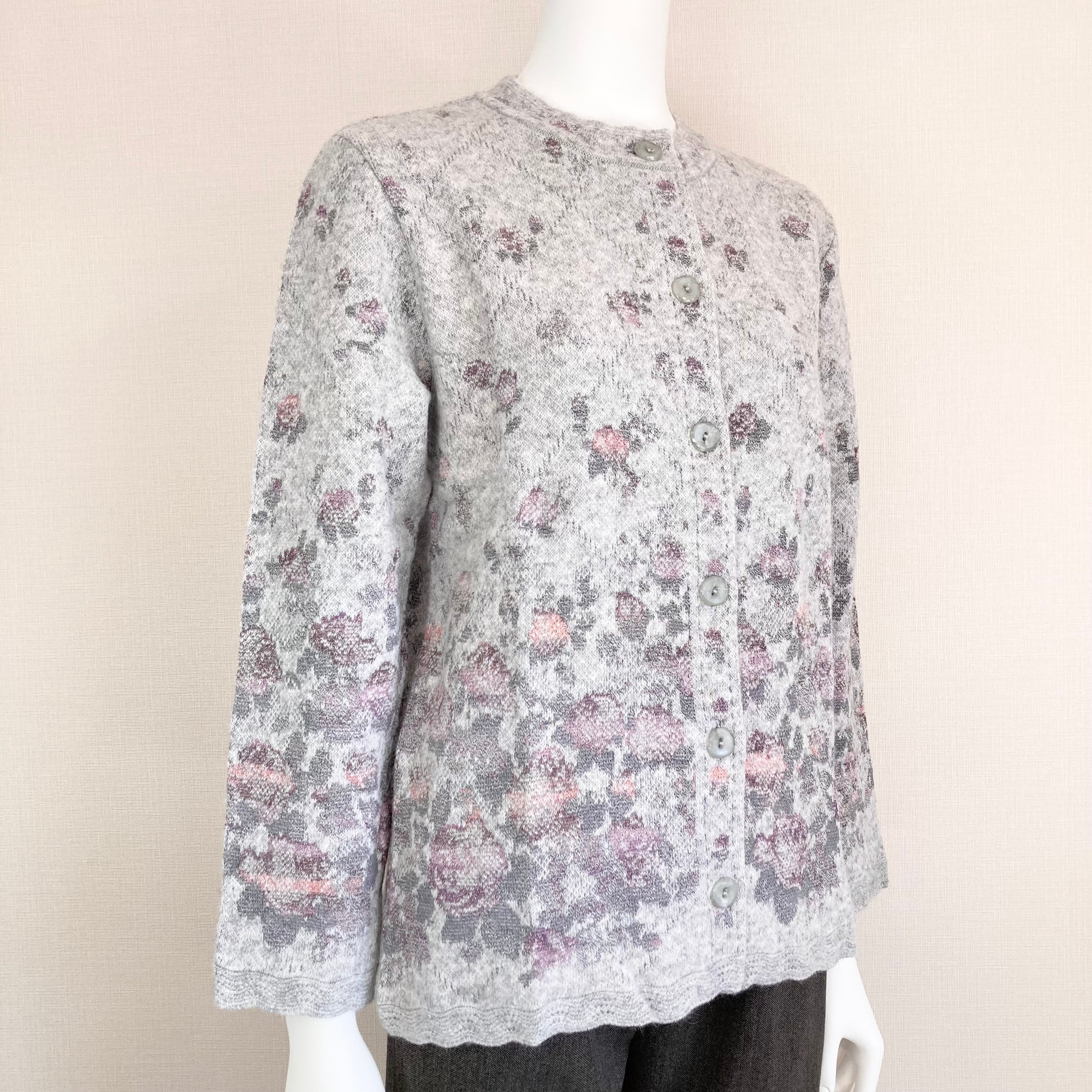 【冬物SALE】50%オフ!ラスト1色特価☆小花柄グラデーションが美しく暖かいアンゴラカーディガン/70代・80代・90代ギフトSサイズ/日本製/シニアファッション