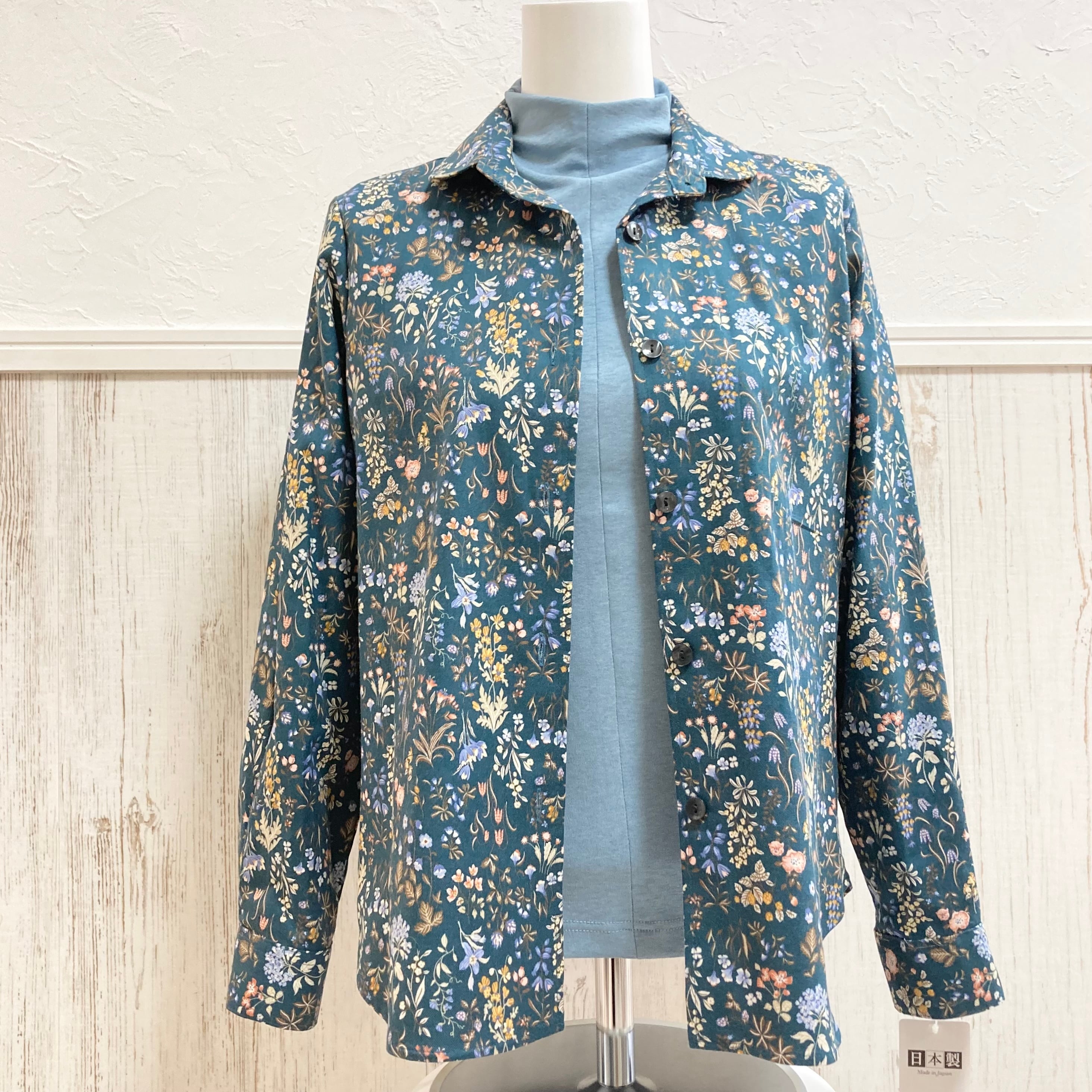 【秋物】落ち着いたカラーの小花柄シャツブラウス/日本製/70代・80代・90代ギフト/シニアファッション/Sサイズ/小さいサイズ/高齢者服