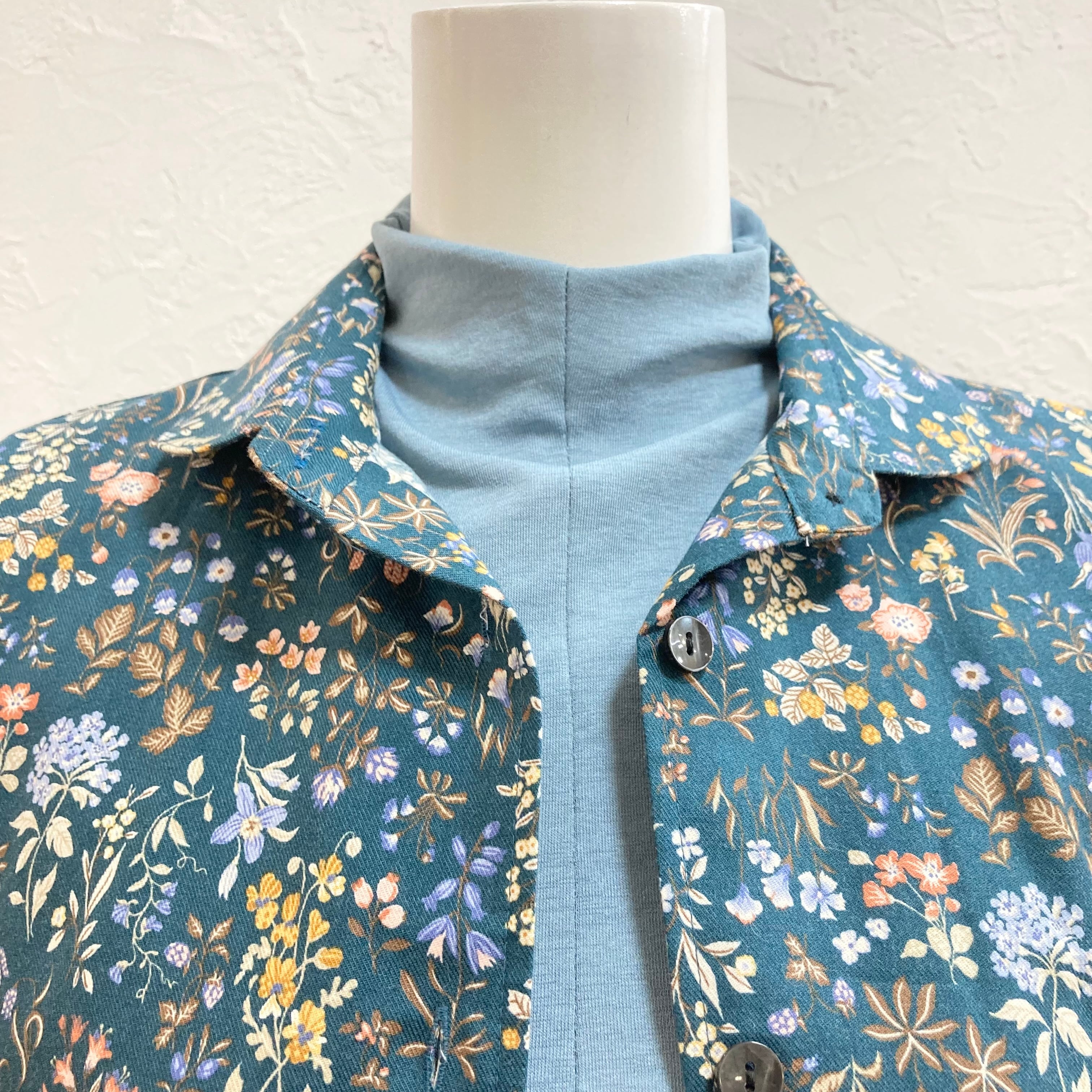 小柄なご高齢の方に人気の小花柄。これ1枚でも、重ね着しても、色々と使えるスタンダードな形のブラウス