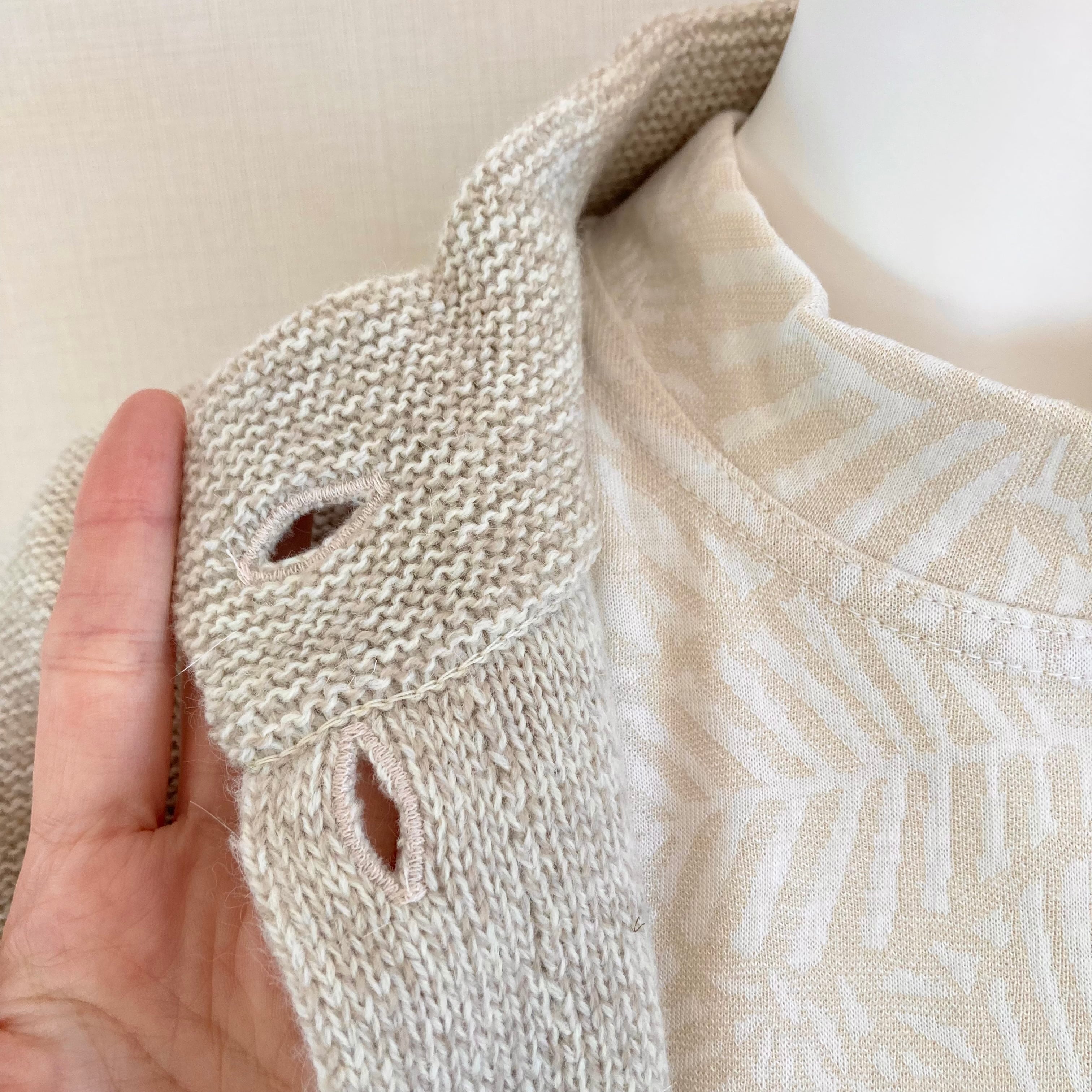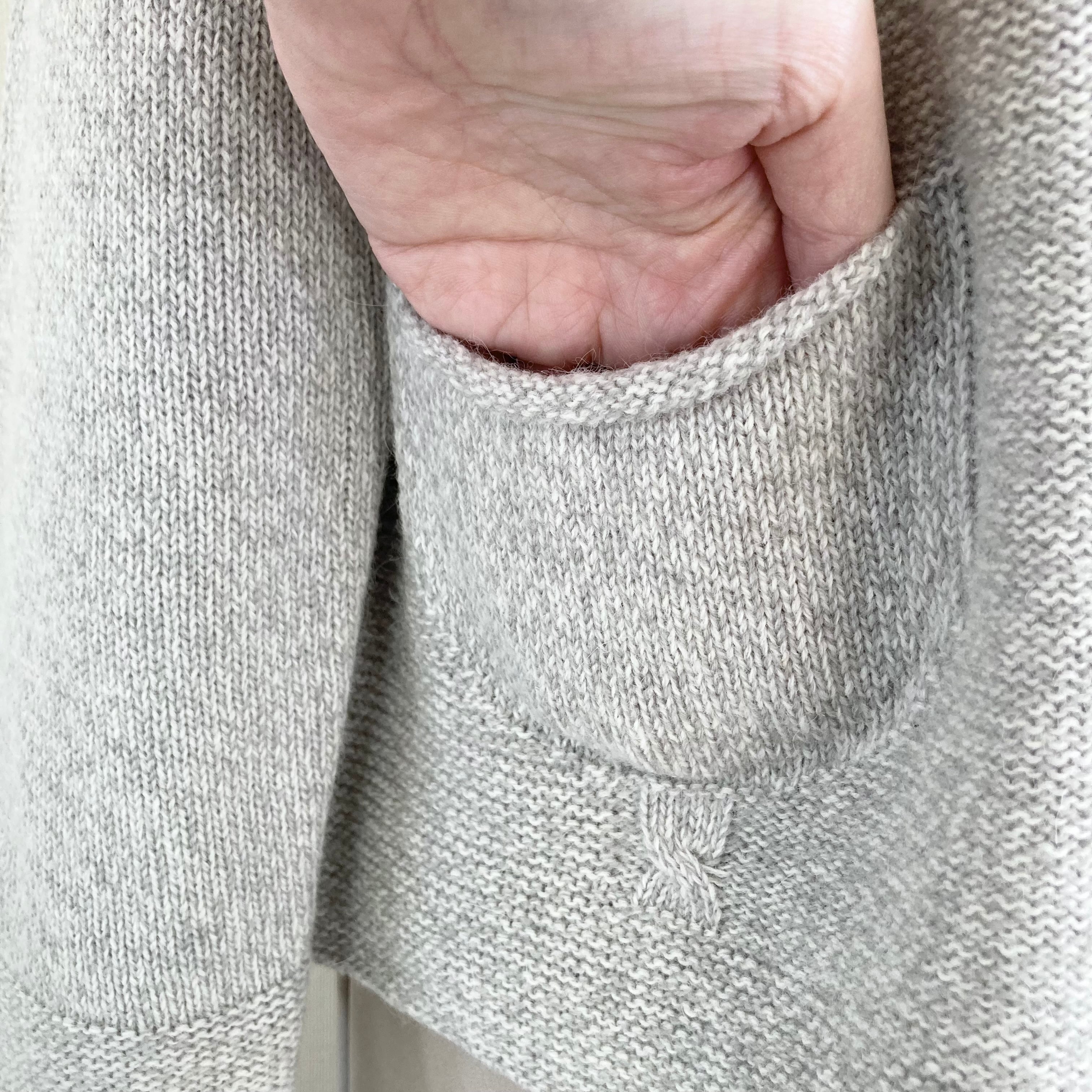 襟付きで首元が暖かい!ちょっとした外出にジャケット代わりとしても使えるポケット付きカーディガン