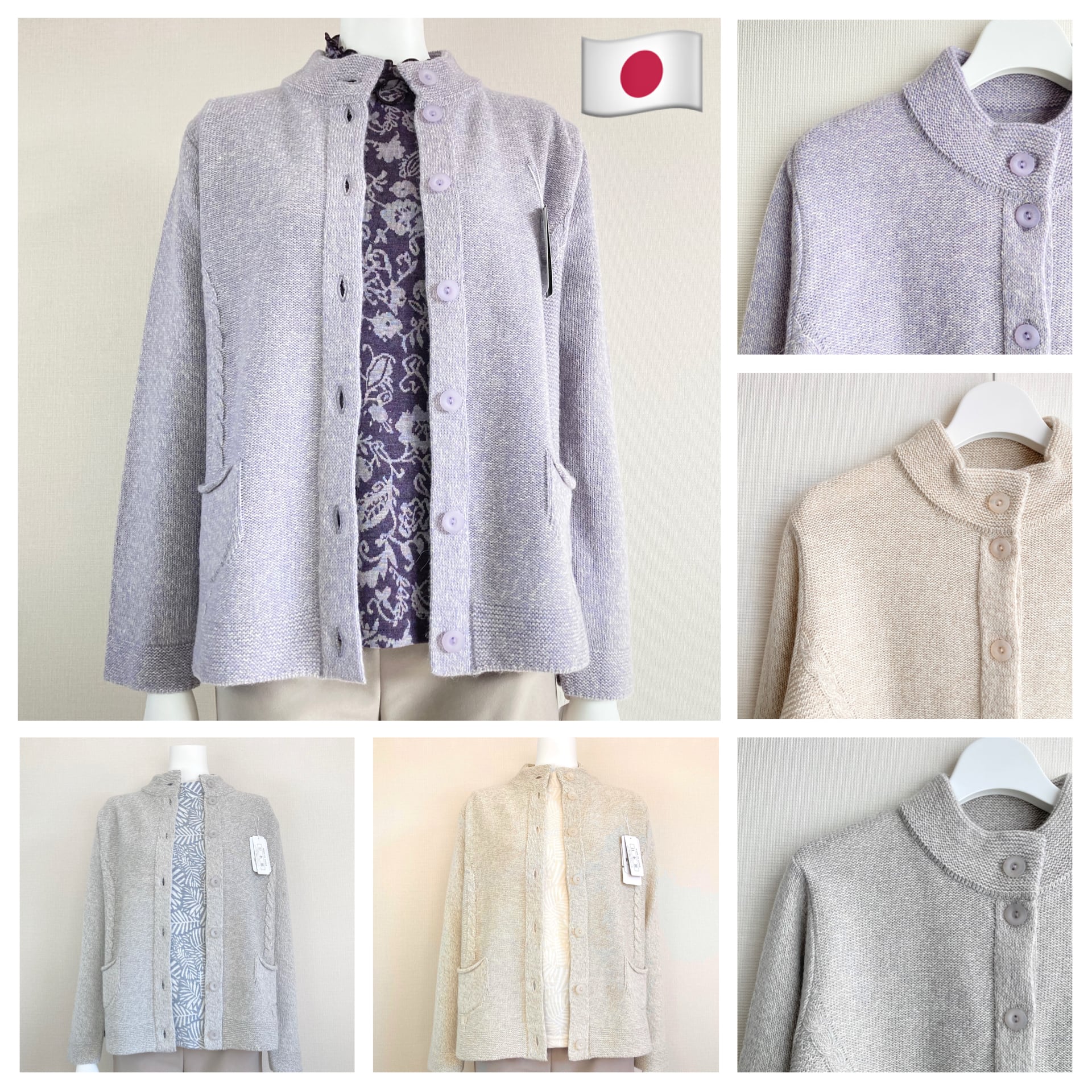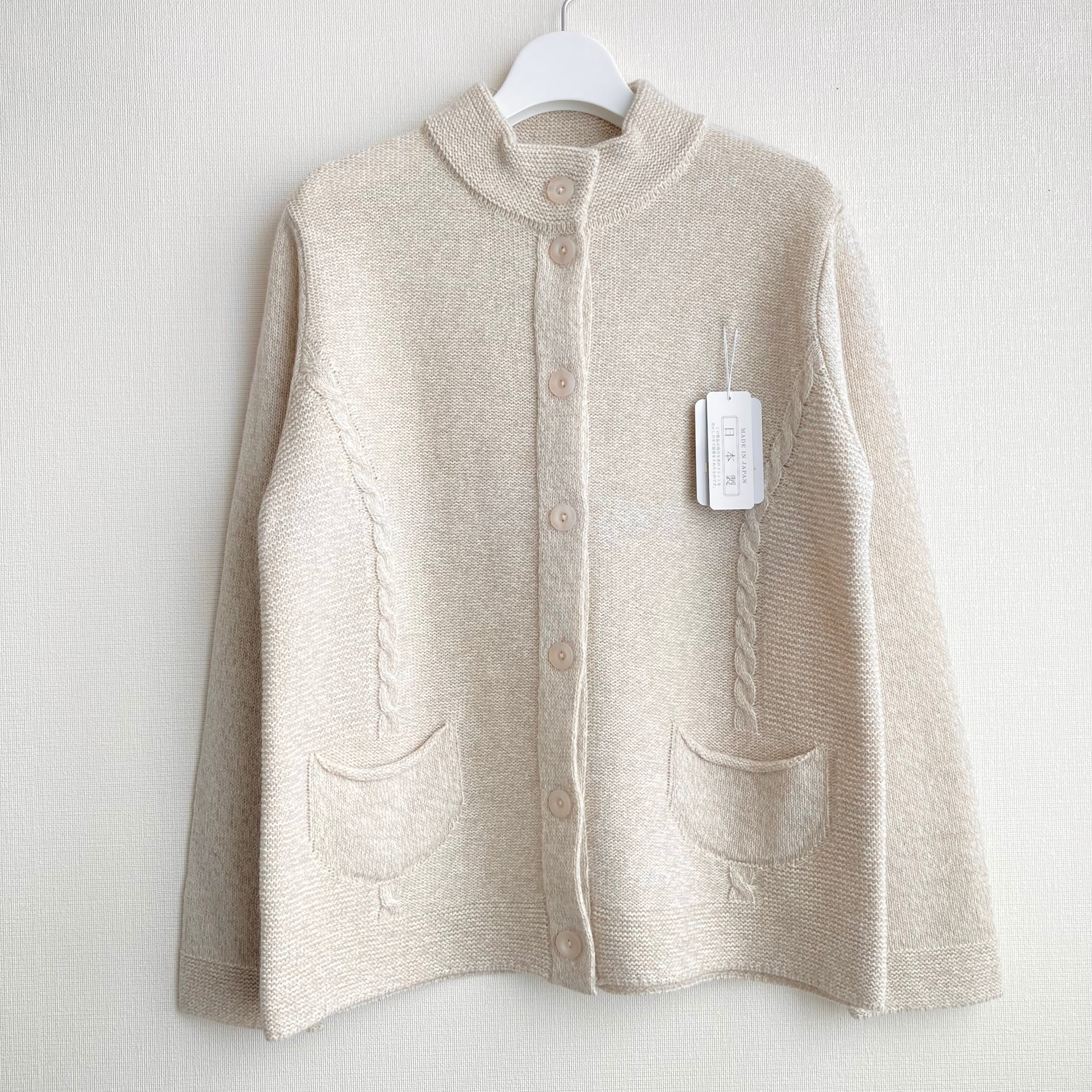 【冬物】暖かいアンゴラ混!立ち襟で首元も安心なポケット付きカーディガン/70代・80代・90代ギフト/日本製/小さめ高齢者服シニアファッション